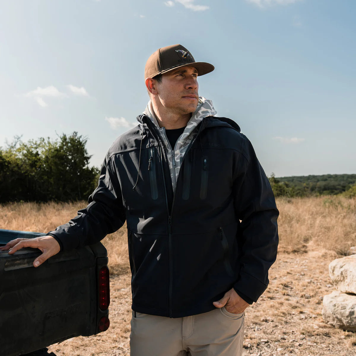 Gear up for the toughest conditions with the Challenger Jacket, engineered for hunting and rugged outdoor activities. Featuring a waterproof shell, this jacket ensures you stay dry and protected in the harshest weather. Its spacious design allows for ample layering, making it perfect for extreme cold temperatures. Storm cuffs provide maximum comfort while keeping warmth securely in, and the adjustable hem lets you customize the fit around your midsection for added protection. Trey, who is 6'1" and 210 lbs, is wearing a Size Large, highlighting its versatile and comfortable fit. The Challenger Jacket is your ultimate companion for braving the elements and staying at the top of your game.