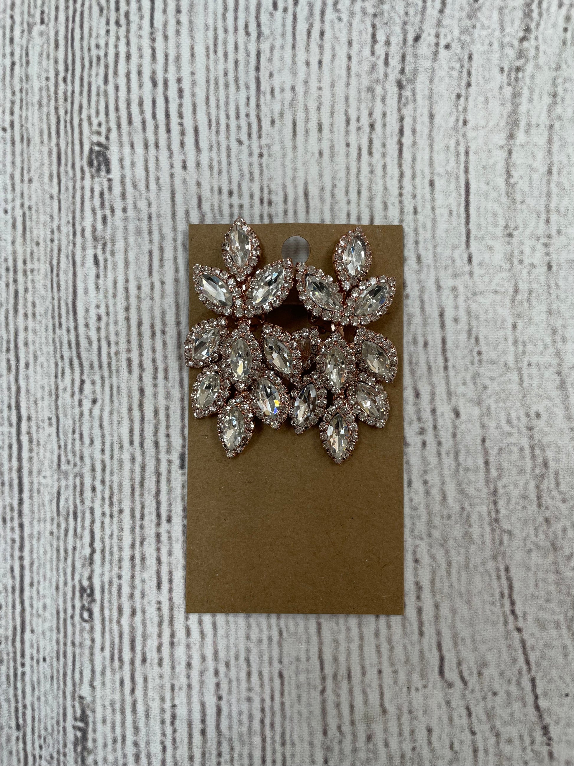 Formal Earrings Clip On Rose Gold Clear Leafy