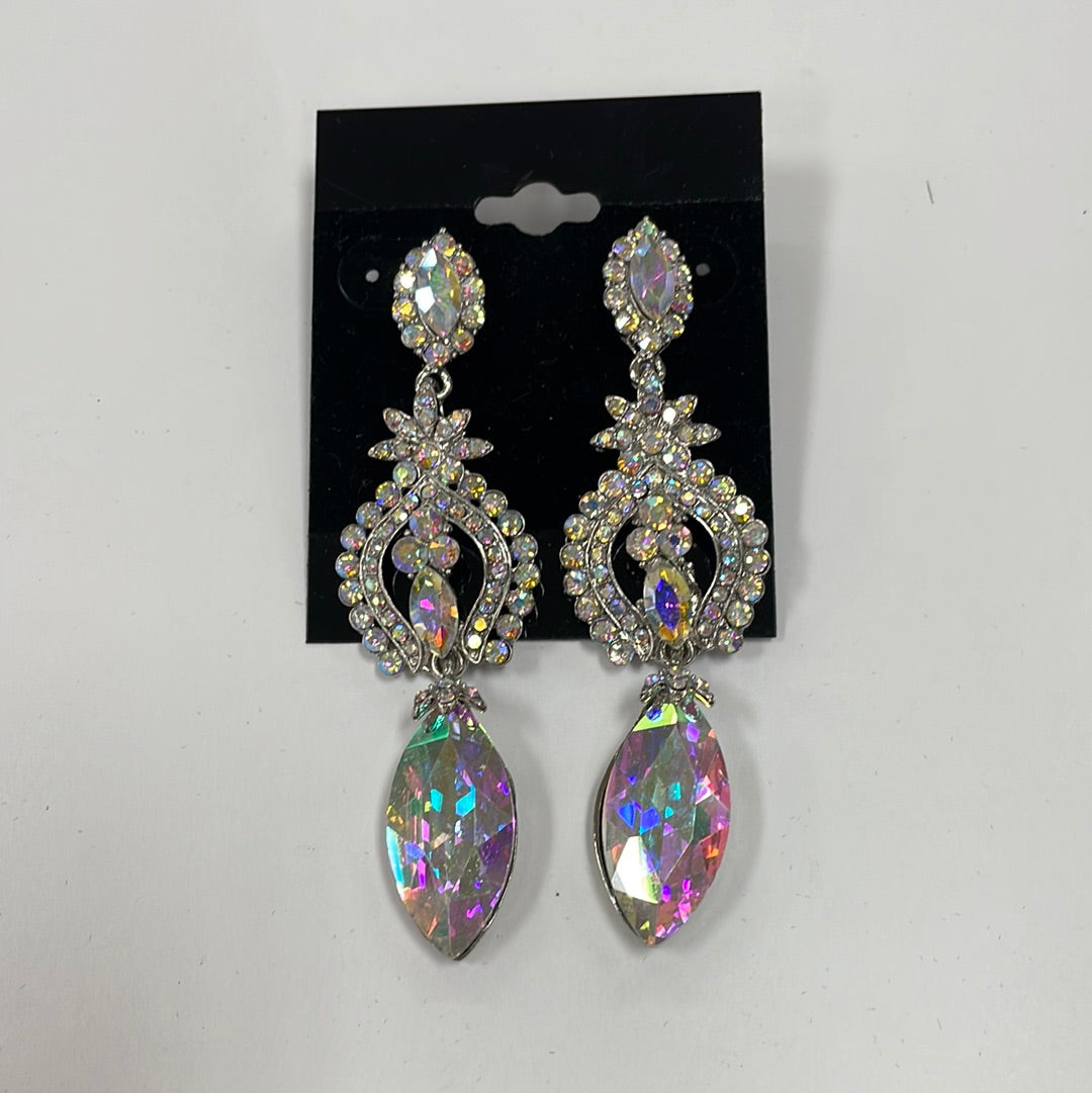 Formal Earrings Silver AB Flowered Middle