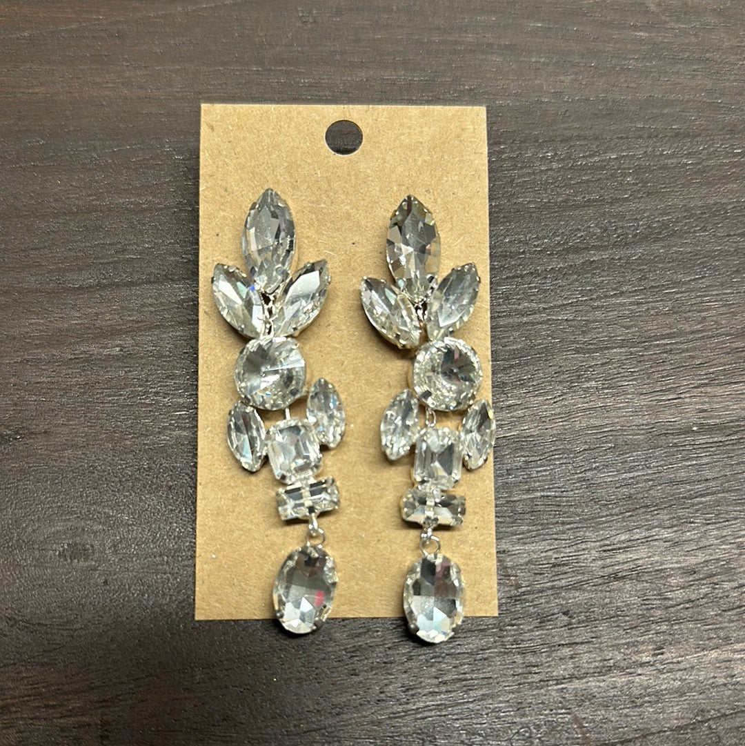 Formal Earrings Silver Base Clear Stone Geo Dangle